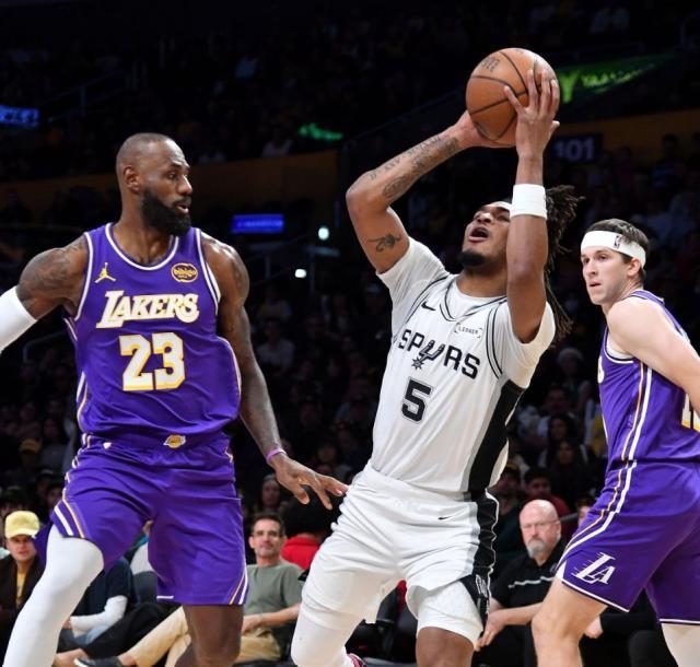 湖人更大的问题在于他们的防线也无法挡住马刺的突破,即便在马刺没有投中三分的回合,他们也能轻易突破杀入禁区,迫使湖人频繁犯规。全场比赛马刺在罚球线上36中29,湖人则只有23中17。另外,马刺还通过转换拿到了35分,创造球队本赛季单场新高,这也是湖人本赛季单场转换失分最多的一场。