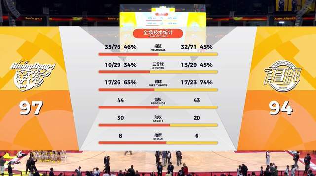 从数据来看,广东男篮5人得分上双,徐杰17分3篮板9助攻,萨林杰17分10篮板3助攻2抢断,王少杰14分8篮板,奎因16分6篮板6助攻,萨姆纳16分。